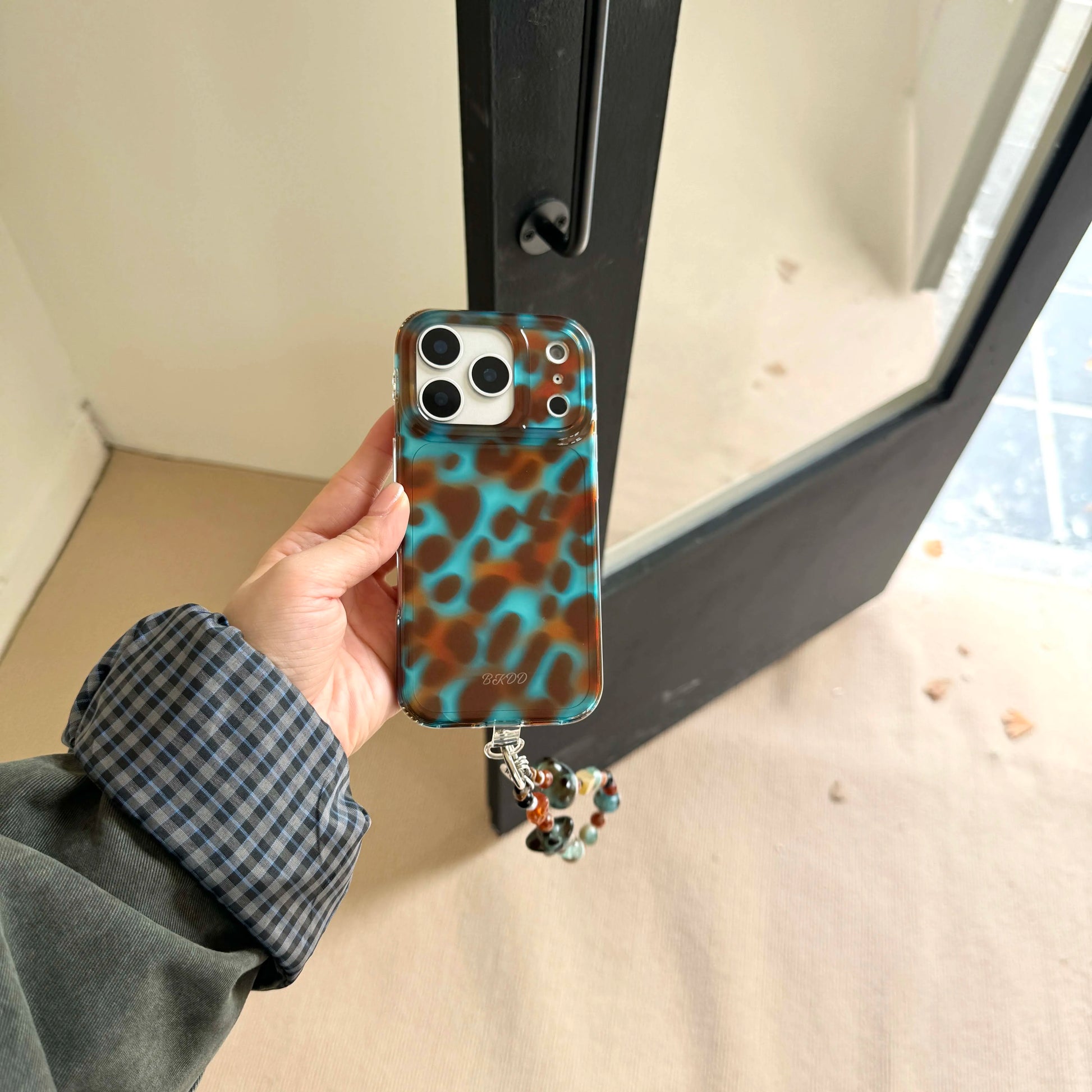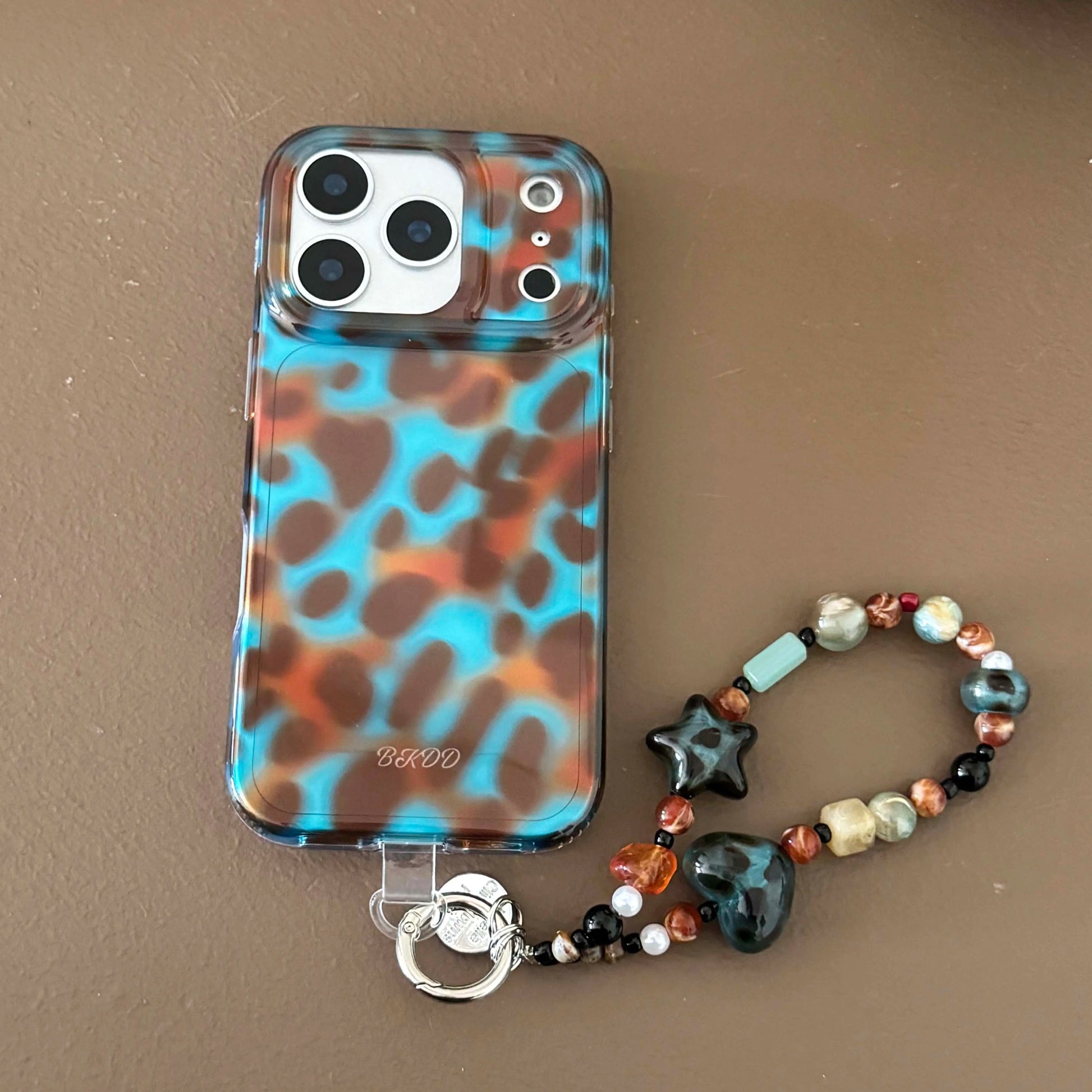 In a world of plain phone cases, this amber crystal design makes a sophisticated statement. The warm blue-brown palette, charming cartoon elements, and functional bracelet create an accessory that's truly special—protecting your iPhone while showcasing your distinctive taste.